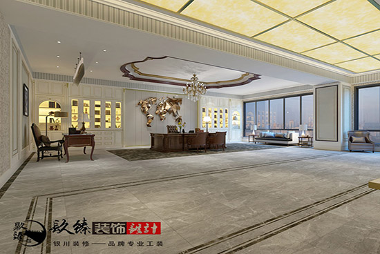 銀川裝飾公司|大唐盛世房地產裝修設計|在辦公樓財務室裝修設計上考慮使用銀行柜臺的風格設計出納、公積金等對外的窗口,稽核、會計等可以在里面靈活安排位置。設計總體上突出安全性,設計了防火防盜設施。在開放式辦公空間中,設計師們則使用了比較冷峻且工業化的吊燈、而在領導辦公室設計里,中式吊燈使用的更加頻繁,讓空間多份溫馨和現代。