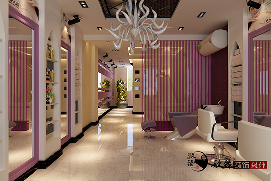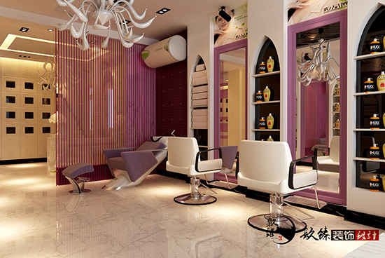 顧客比較喜歡靚麗,溫暖,青春的顏色,最后使用了香芋紫色作為案例設(shè)計(jì)中的主打色調(diào)。鏡子是美發(fā)店中不可缺少的,怎樣可以把每一面鏡子合理的所連接到一起?是需要 設(shè)計(jì)師專業(yè)手法來進(jìn)行搭配的。