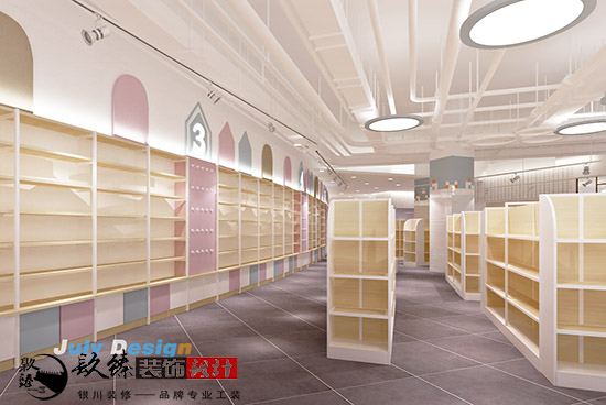 母嬰,在這個二胎已經放開的時代是在熟悉不過的字眼了,寶寶還沒出生的時候,做媽媽的就已經迫不及待的去各大母嬰店精心挑選媽媽和寶寶所需要的用品了,一個高品質的母嬰店裝修設計會取得媽媽們的更多信任。那么從裝修的角度上來講,銀川裝修公司|銀川裝修網銀川母嬰店裝修如果可以有一套更溫馨的設計方案,一定會對店面是一個加分項。