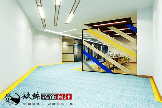 銀川裝飾公司|銀川辦公室裝修設(shè)計(jì)|設(shè)計(jì)師楊芮設(shè)計(jì)的創(chuàng)業(yè)孵化園風(fēng)格非常的多彩,顏色搭配的非常的濃重,使用黃色和藍(lán)色,這樣冷暖相互搭配也是起到了相互吸引的效果,辦公室內(nèi)的環(huán)境讓人一看就非常有創(chuàng)新,非常的年輕化。再加以明亮的造型燈帶,幾何的造型,體現(xiàn)出了別致的時(shí)尚創(chuàng)新風(fēng)格,更能拉伸室內(nèi)的空間。