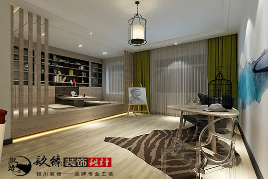 在整個空間改造過程中,為了讓空間相融合打開了部分墻體,擴大了陽臺的面積,給人以開闊的景觀視野和舒適的居住體驗。餐廳區域擴大了北陽臺的面積,為了有種融入自然的落地窗的感覺。大片的落地窗,撫觸著原木的厚實溫潤,有著引景入室的渡假享受,細節中,銀川裝修公司銀川裝飾公司用固定住機柜層板展現實用功能。青石色的地磚加上文藝清新的壁紙,讓該客廳彰顯一種獨特而安靜的美,再加上石膏板造型吊頂,期間再鑲嵌上造型氣質的裝飾燈,讓其彰顯一種不平凡的魅力。