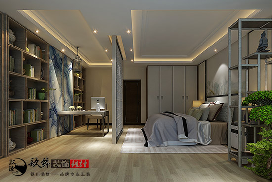 銀川裝修公司镹臻裝飾,書香四溢新中式別墅臥室裝修設計