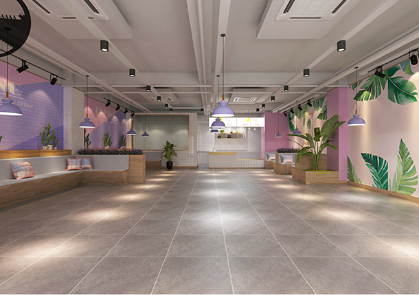 看到墻壁上的粉色和紫色就知道這是什么店鋪了,這樣的甜品店裝修設計案例相信誰都會喜歡,粉色溫馨甜蜜和紫色浪漫唯美的墻壁搭配白色工字磚,既有甜美可愛也有文藝氣質,坐在這里喝杯下午茶應該很享受。