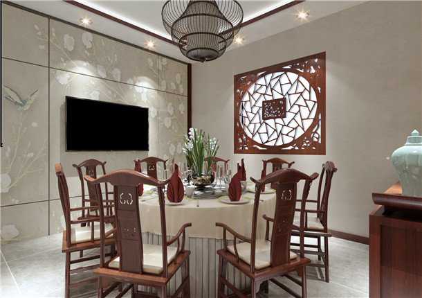 第四、餐飲空間裝修中其他裝飾品的選擇:餐桌布及窗簾等布料飾品,盡量選用耐臟易清潔的面料。如果餐廳較為狹窄的話,可于墻面裝上一面大鏡子。另外餐廳背景墻上的裝飾畫的要根據餐廳整體來進行選擇,圖案最好是溫馨和清爽的題材。