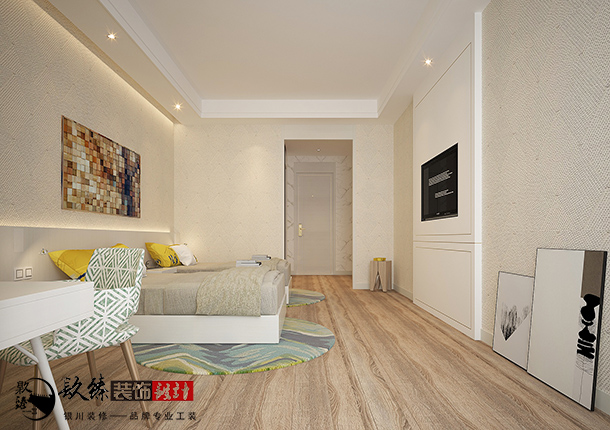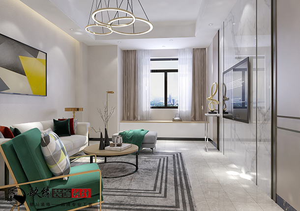 現代風格的色彩設計受現代繪畫流派思潮影響很大。通過強調原色之間的對比協調來追求一種具有普遍意義的永恒的藝術主題。裝飾畫、織物的選擇對于整個色彩效果也起到點明主題的作用。