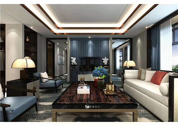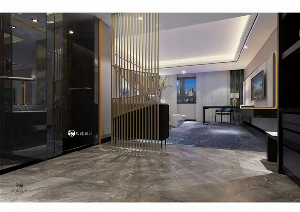 頂面多數(shù)使用新中式線條吊頂,低調(diào)中不失奢華,輕盈的金屬吊頂與檀木相結(jié)合,奢華與尊貴也彰顯了格調(diào)。衛(wèi)生間使用地磚,墻磚,金屬,玻璃等材質(zhì),會增加原本看起來比較小的空間,視覺上給人一種明亮的感覺,地毯用比較復(fù)古的深藍色系,和墻面的灰色搭配起來非常的有質(zhì)感,整體空間屬于比較冷色系的感覺,純靜,安逸感油然而生。