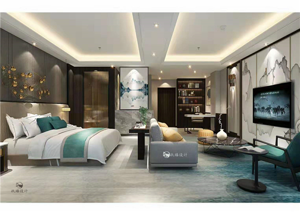 使用胡桃色木質(zhì)材料作為柜體的主打色,這種顏色給人一種沉穩(wěn),低調(diào),復(fù)古藝術(shù)的感覺,對于一些出差需要和客戶溝通的人士,該酒店是不二之選。將生活的空間進行細化,區(qū)域進行裝飾分化,客房內(nèi)的簡約,高雅格調(diào)以及具有新中式古典風(fēng)格的陳設(shè)營造了舒適的休閑空間。