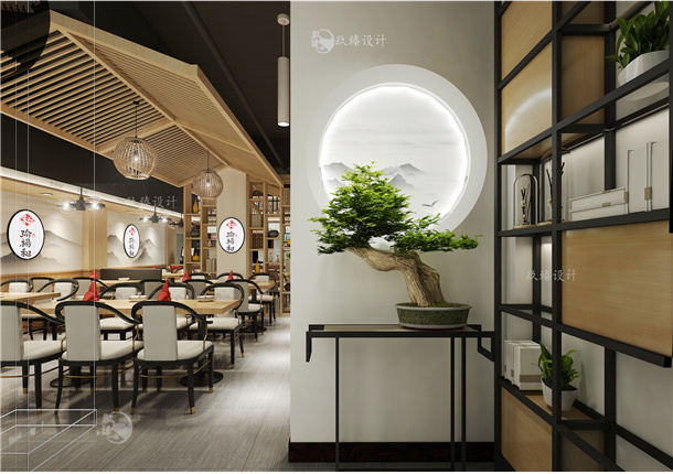 本案例以清新的原木飾面作為主要材質(zhì),搭配不同中式元素造型展現(xiàn)出一種對藝術(shù)境界的情懷,本案例總使用面積為90平米,需要有效合理的利用空間并在空間形象上有所表現(xiàn),并且需要將設(shè)計特色融入到餐飲特色中,體現(xiàn)整體餐廳裝修的風格,細節(jié)造就點滴。本案設(shè)計位于銀川市興慶區(qū)湖濱街店,處于市中心較繁華的地帶,做好餐廳裝修設(shè)計可以有效的提高品牌關(guān)注,從而達到客流量的同時還可以達到品牌營銷力。