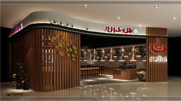 木質格柵近幾年在各項裝飾設計中很受歡迎,尤其是在餐飲業中,本案例是在寧夏青銅峽市的CCmall廣場,也是處于一個比較中高端的消費場所,形象門頭使用木質格柵會增加整體的質感,在低調中提升品位,它和大理石材的感覺是完全不一樣的,大理石材給人的感覺是奢華的品位,比較適用于大型酒店之類的裝修設計中,而木質格柵,是低調的品位。