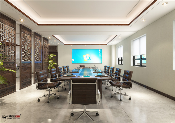 本案設計風格為現代中式辦公室。本案設計給人優雅清幽、大氣時尚的氛圍,并且能夠在風格中找出不同于平常的感覺。將富有中式韻味的元素和現代質感的元素靈巧結合,為人們營造出一幅清雅的畫面,創造一份怡然自得的工作心情。