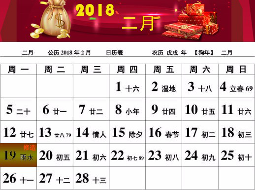 公元2018年02月19日 農(nóng)歷01月04日 星期一 水瓶座