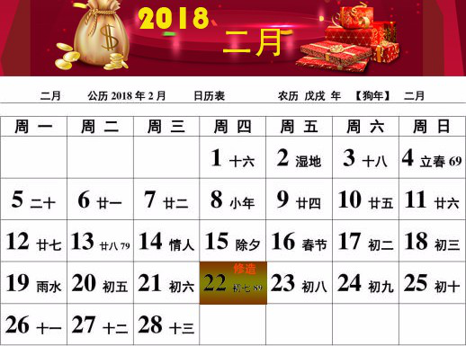 2018年2月始 30天內(nèi) 共有9個(gè)適合裝修的黃道吉日