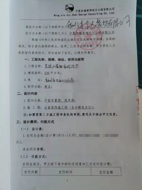 銀川工裝公司恭喜銀川蕓頂九香面室內裝修設計簽約镹臻裝飾